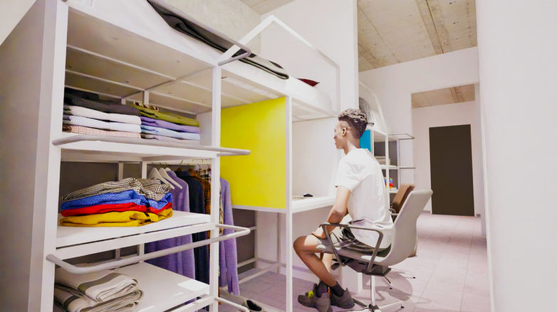Designed for those who like their own space, and enjoy the company of a room mate. Designed for 2 students to share a bedroom with modern loft beds, with wall separating student spaces.